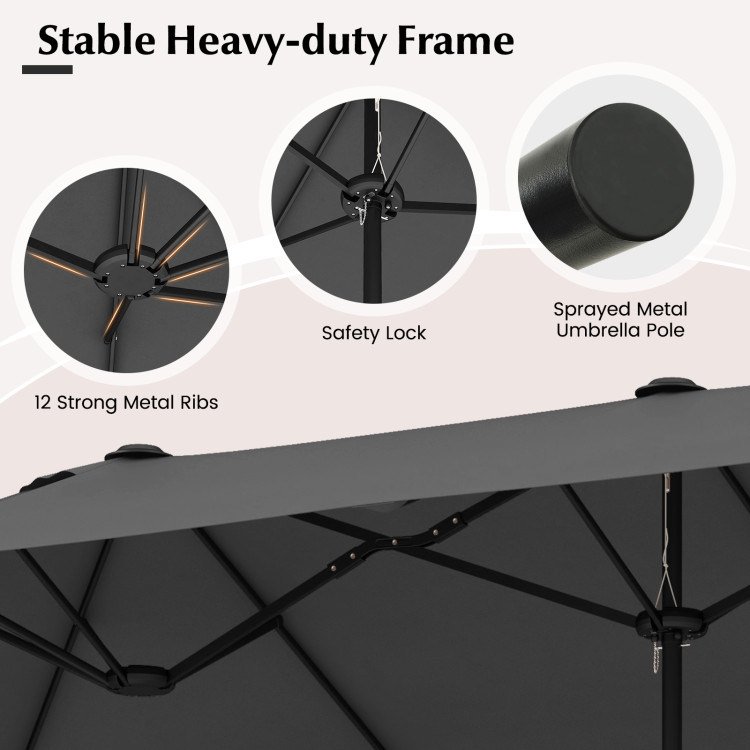 13 Feet Double-Sided Patio Twin Table Umbrella with Crank Handle