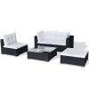 5 Piece Patio Lounge Set with Cushions Poly Rattan Black