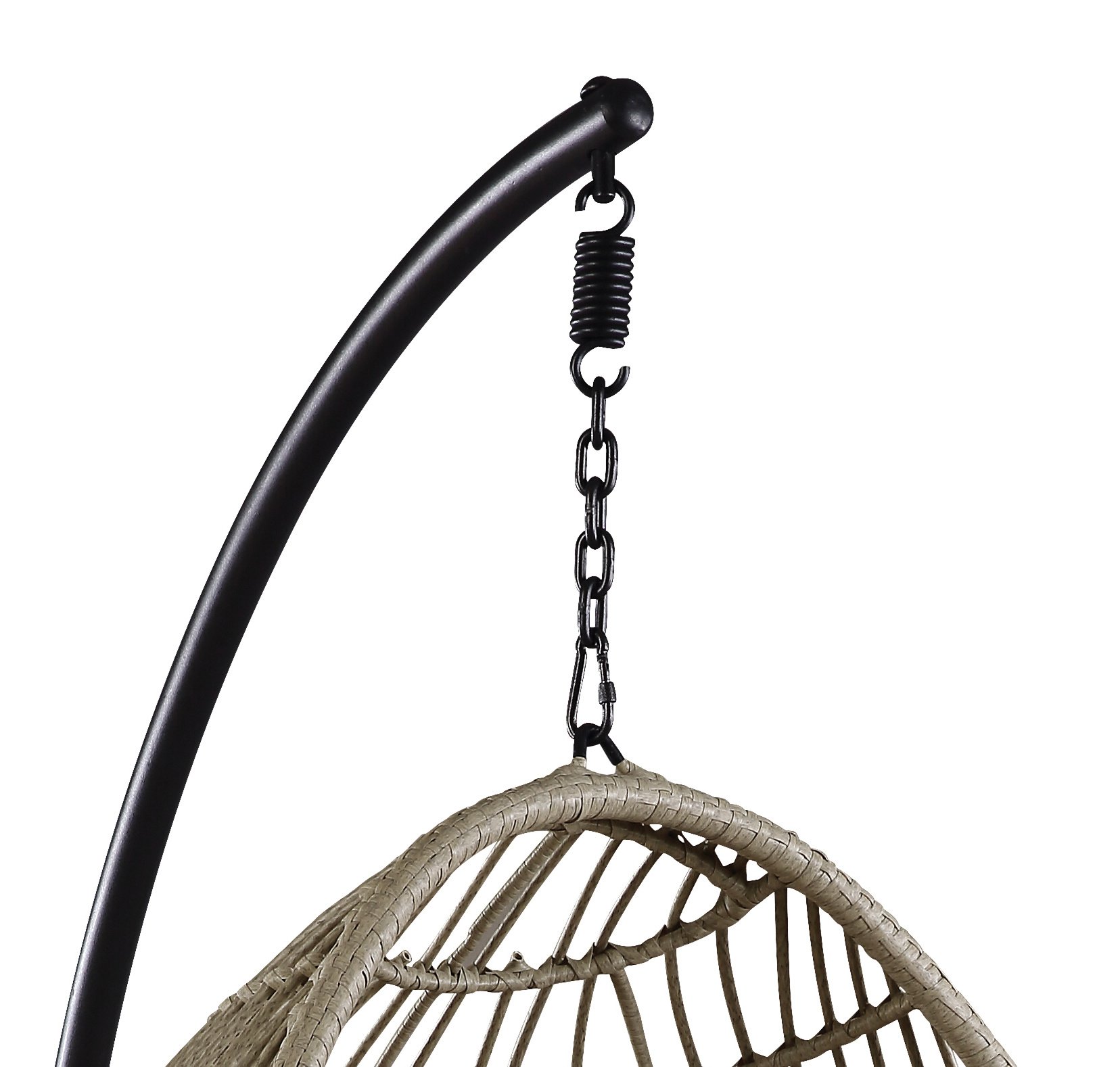 RomanceTake advantage of summer weather and soak up the sun with the Vasant patio swing chair and stand. The removable foam-filled cushion and egg shape make relaxing enjoyable for hours with its body-hugging shape. The all-weather wicker will stay pristine for years to come. Get some summer reading done while enjoying the outdoors.Product Details•KD, Patio Swing Chair & Stand• Seat Cushion Included (Removable)• Includes: Swing Chair, Stand, Cushion• CONSTRUCTION: Frame Black Finish, Wicker (mm Round) & Steel Powder Coated (mm)• SEAT CUSHION: Fabric• Material: Fabric (Solid Pattern)
