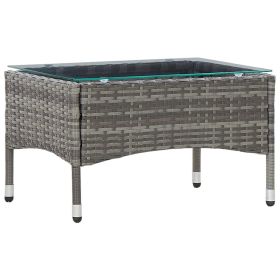 Tea Table Gray 23.6" Poly Rattan and Tempered Glass