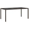 Home > Patio Table Brown 74.8"x35.4"x29.5" Tempered Glass and Poly Rattan
