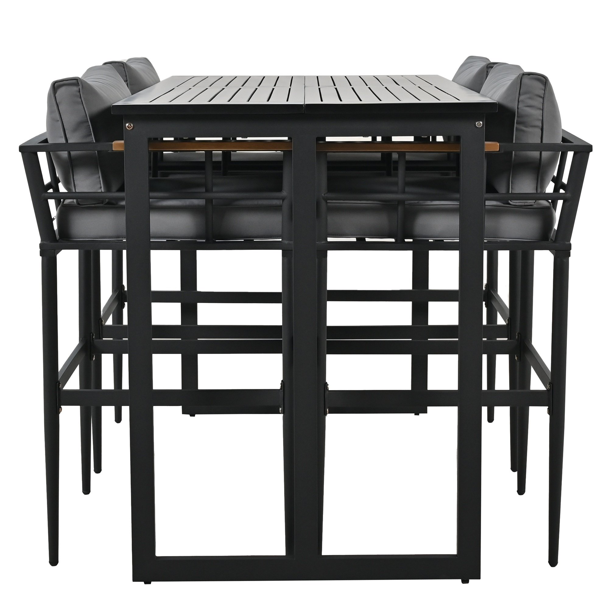 Home > U_Style Steel Outdoor Dining Set with Acacia Wood Armrest Suitable For Patio, Balcony Or Backyard