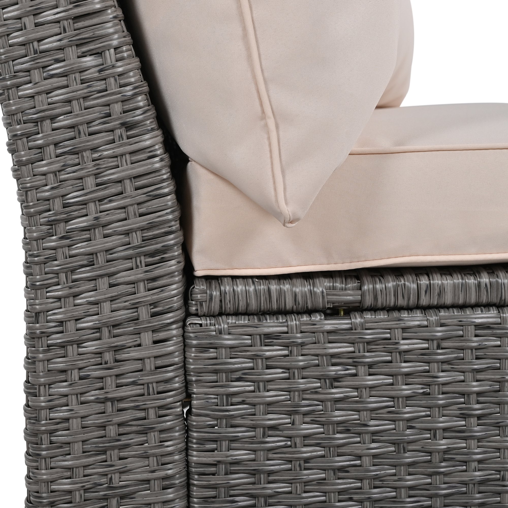 [Versatile Use]This Fan-shaped Rattan Suit Combination is perfect for hosting large events or gatherings. It can accommodate multiple guests; making it perfect for dinner parties or barbecues. The cushions are comfortable and provide ample support for extended use. [Easy Assembly]Our product shipped with easy-to-follow and detailed instructions; all of the hardware and pieces were labeled perfectly and easy to assemble.